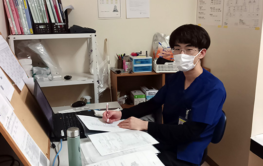 1年目ということもあり、色々な疲労感がある中でも、十分な日数の休日があることは有難く感じています。仕事の仕方においても、なるべく自分のペースで出来るようにと、諸先輩方がフォローアップしてくれるので、無理なく続けることができます。残業や休日の呼出はほとんど無いため、仕事とプライベートのオンオフをしっかり付けられます。休日はしっかりと家族との時間を過ごすことが出来ており、心身ともにリフレッシュできています。今現在介入している患者様や、これから関わっていく患者様等の疾患等についても再復習して幅広く理解を深め、より一層の治療計画・目標と評価のレベルを上げて行きたいです。将来的には、より専門性の高い知識と技術を習得し、患者様一人ひとりに合わせた最適なリハビリテーションを提供できるよう努めていきたいと考えています。